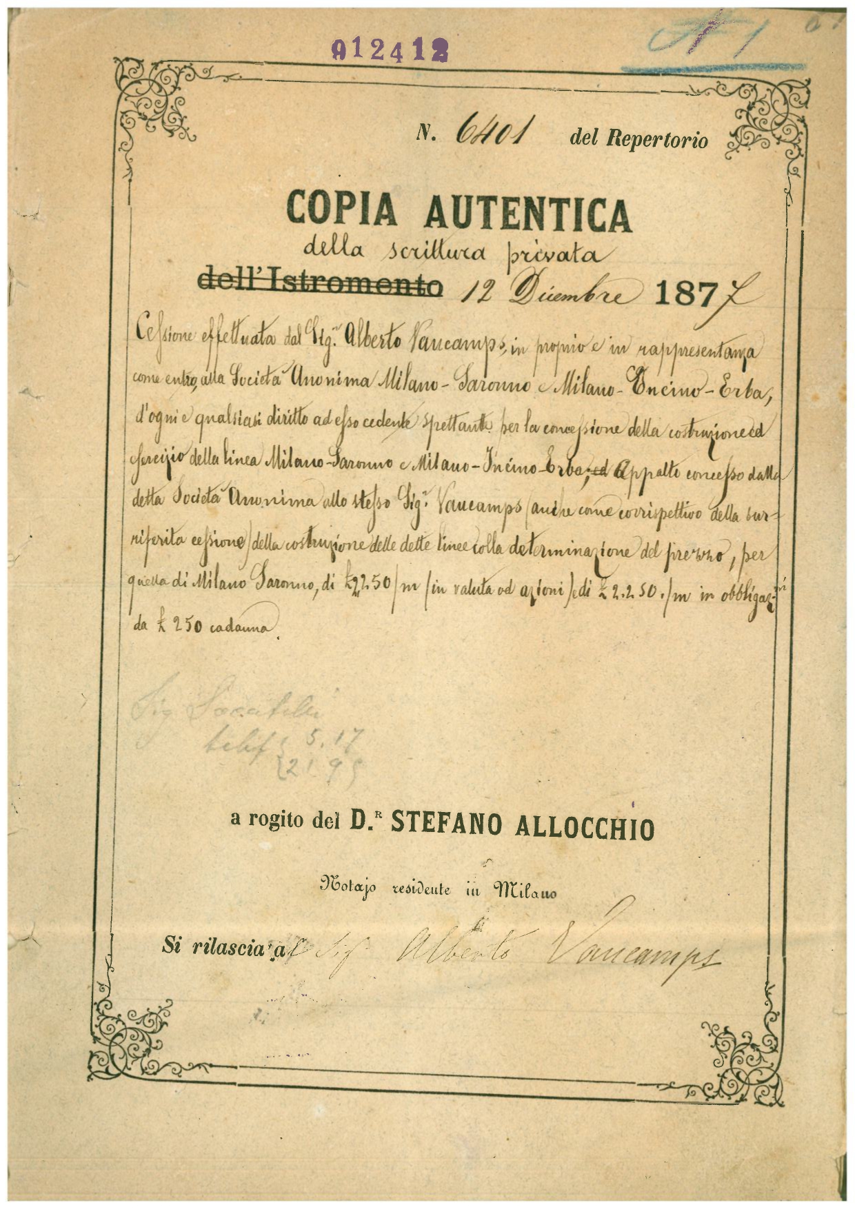 Atto di cessione quote Vaucamps/Società Anonima, 12-12-1877