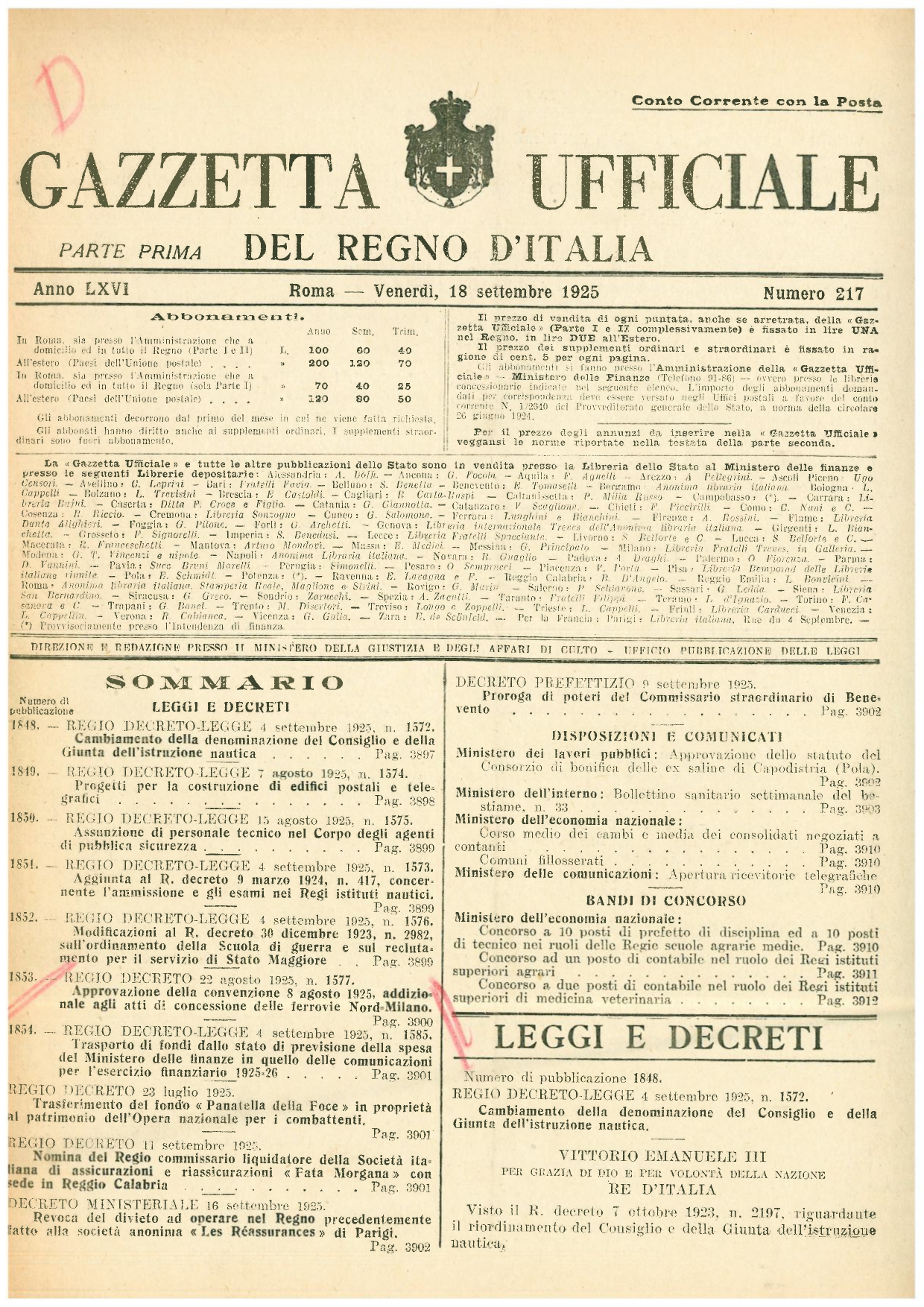 Gazzetta Ufficiale del Regno d'Italia del 18 settembre 1925