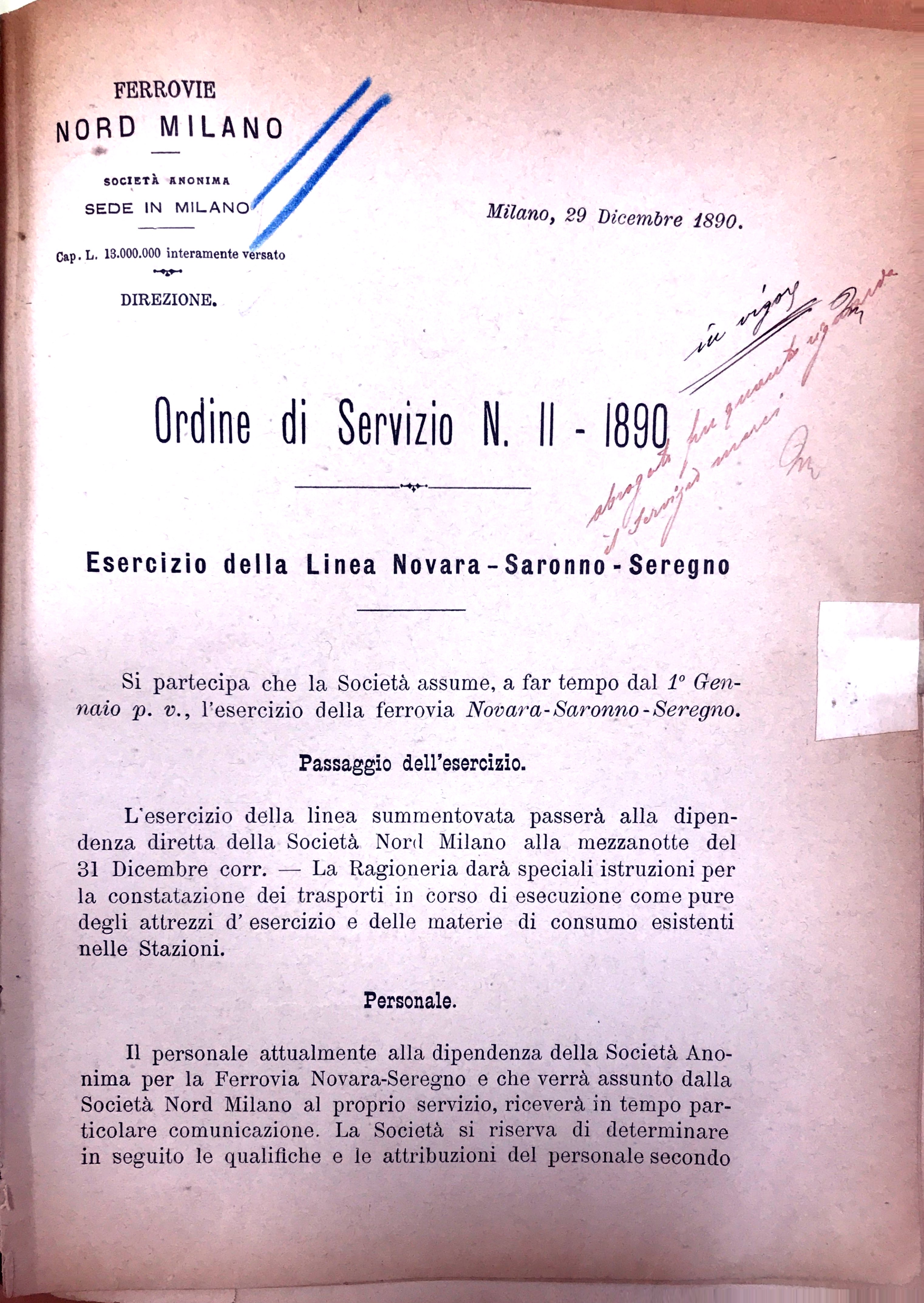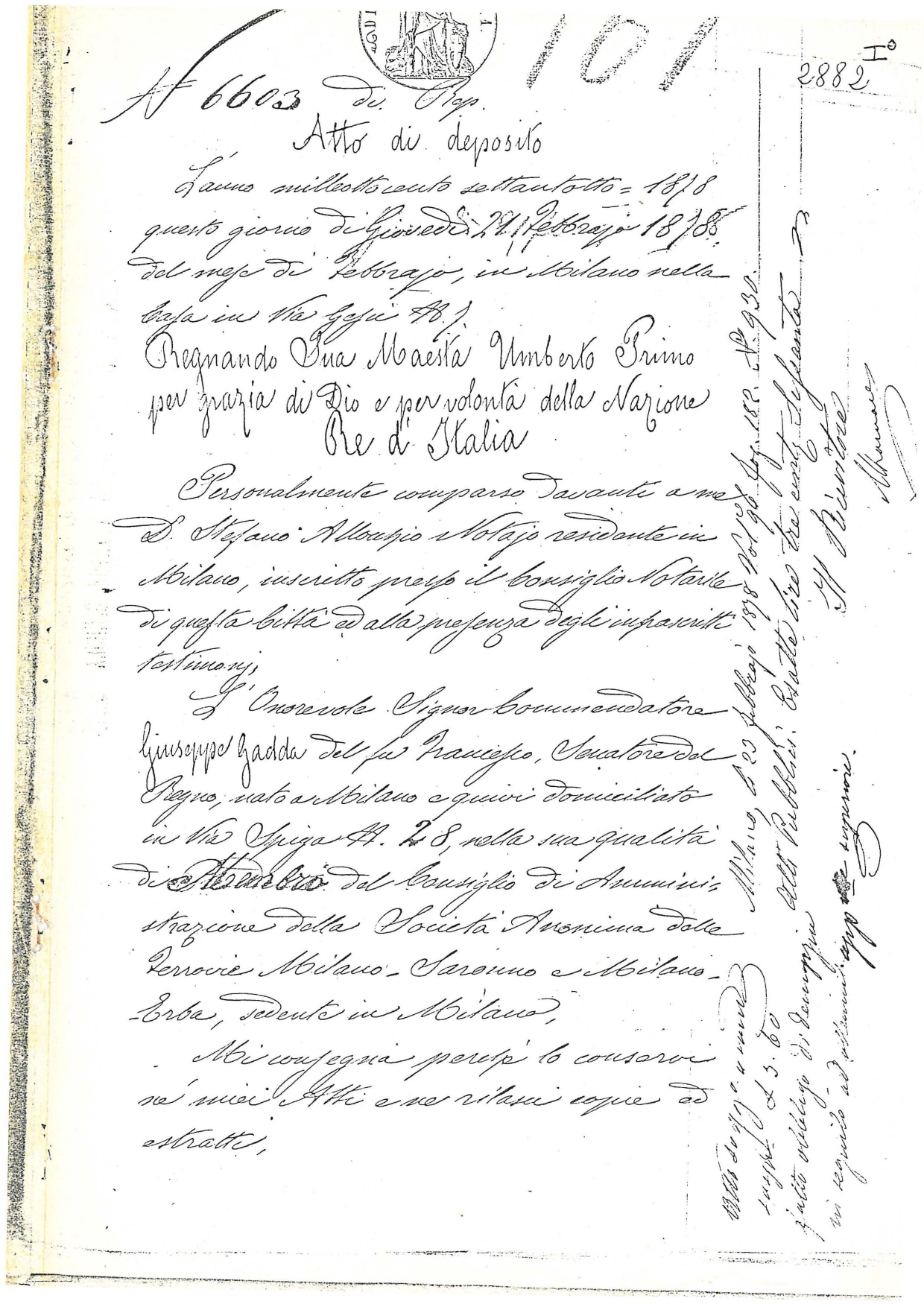 Convenzione costruzione ferrovia Novara-Saronno-Seregno, 21-11-1883