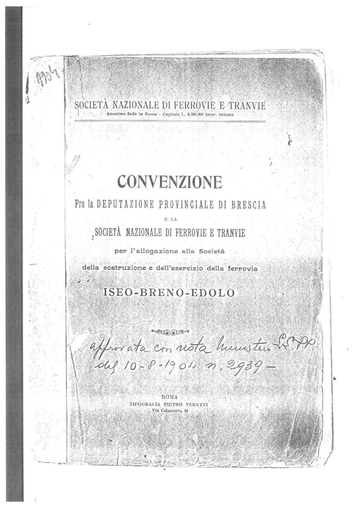 Convenzione Iseo Edolo tra Deputazione Provinciale Brescia e SNFT, 1904