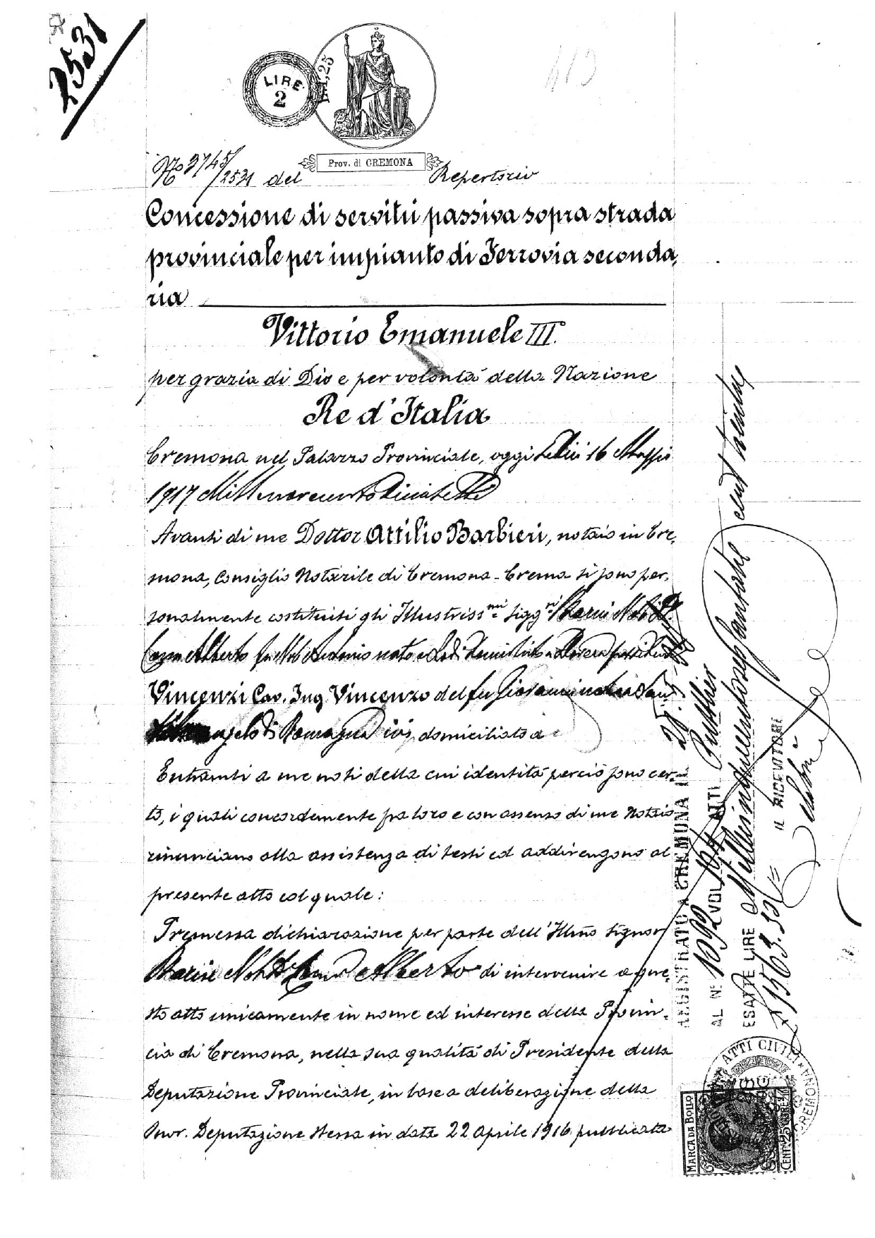 SNFT - Provincia di Cremona, atto di servitù passiva